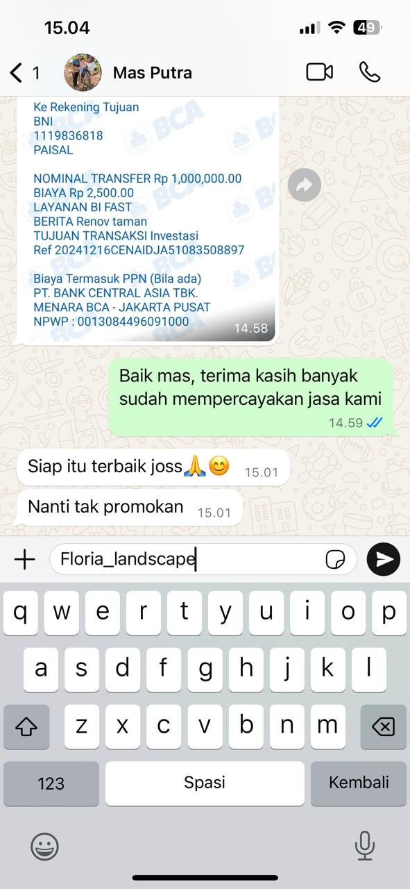 Jangan tunda lagi, taman impianmu bisa mulai hari ini! Dapatkan konsultasi gratis langsung dengan tim Floria Landscape untuk desain dan penawaran terbaik.